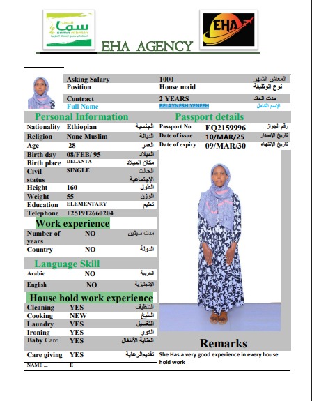اسم العامل : BELAYNESH YENEEH