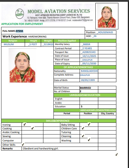 اسم العامل : JABADA AKTER