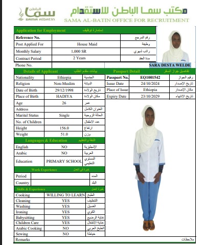 اسم العامل : SARA DESTA WELDE